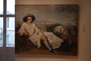 Warum ich das alles erzähle? Weil ich ein Praktikum in der Casa di Goethe (nicht zu verwechseln mit dem Goethe-Institut) absolviere, die sich dieser kulturell sehr wichtigen italienischen Reise widmet. Die Casa di Goethe befindet sich in dem Haus, das Goethe bei seinem Romaufenthalt bewohnt hat und ist das einzige deutsche Museum im Ausland. Neben der Dauerausstellung gibt es eine Wechselausstellung und eine Spezialbibliothek, die fast alle Erstausgaben von Goethes Werken umfasst.