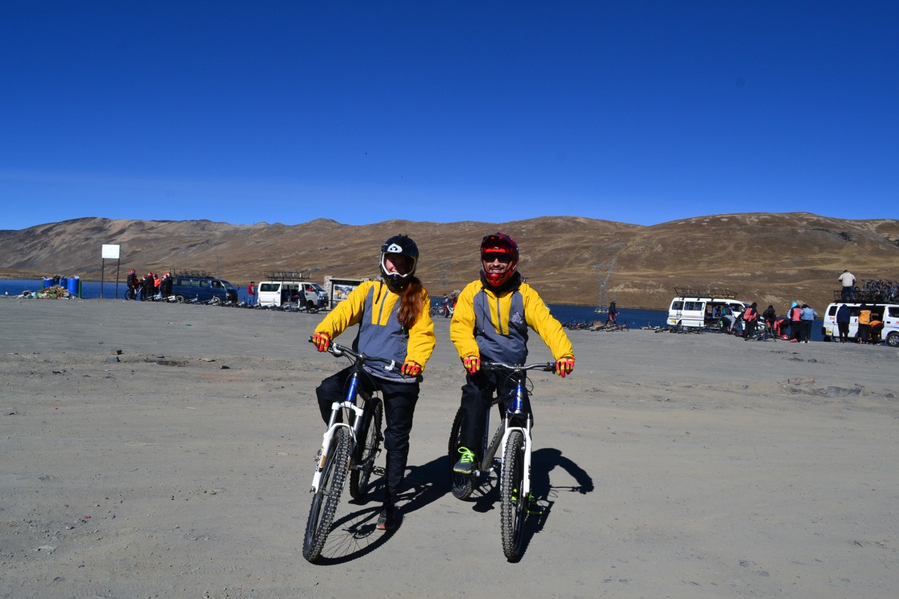 Morgens sind wir zunächst mit dem Van bis zur Cumbre gefahren, wo uns der Ablauf erklärt und die Ausrüstung verteilt wurde. Dort oben war es noch ziemlich kalt und die Landschaft war wortwörtlich atemberaubend. Wir konnten Lamas in freier Wildnis beobachten und waren tief verbunden mit der, wie man hier so schön sagt, ‚Pachamama‘ (☺). Zum Glück war es auch nicht bewölkt, nebelig oder sonst was, sodass wir die Aussicht zu 100% genießen konnten. Es ging dann mit dem Mountainbike ziemlich schnell ca. 1000 Höhemeter abwärts.