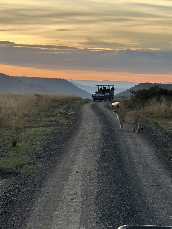 Unseren dritten Tag verbrachten wir im Nambiti Private Game Reserve, einem Big-Five-Reservat in Südafrika. Dort nahmen wir an zwei Game Drives teil, bei denen wir mit etwas Glück und der Unterstützung des Ranger zahlreiche Tiere in freier Wildbahn beobachten konnten. Zu unserem Höhepunkt gehörte die Sichtung von Elefanten, Löwen,