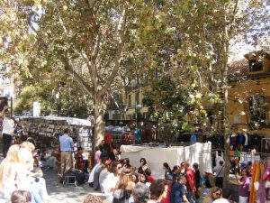 Malasaña hat seinen ganz eigenen Rhythmus – tagsüber sieht man vor allem junge Leute durch die Straßen streifen, in Buchläden oder kleinen Boutiquen verschwinden oder in einem der vielzähligen kreativ eingerichteten Cafés pausieren. Aber erst nachts ist das Viertel wirklich belebt, wenn sich in den Bars und auf den Straßen die Menschen drängen und bis in die Morgenstunden verweilen. Das Zentrum von Malasaña ist ‘Plaza del dos de mayo‘, ein gängiger Treffpunkt und am Wochenende von kleinen Ständen umgebener Platz.