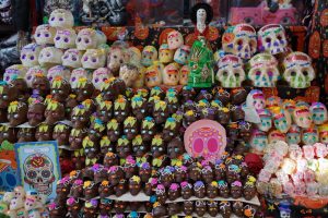 Schon bei meiner Ankunft Anfang Oktober waren Vorboten dieser Feiertage, die vom 30.Oktober bis 04.November stattfinden, allgegenwärtig : Cafés, Geschäfte, Restaurants und eigentlich die ganze Stadt war geschmückt mit Girlanden mit Totenmotiven, Bäckereien vekauften das zuckrige Pan de Muertos und Straßenhändler essbare und dekorative Totenköpfe.