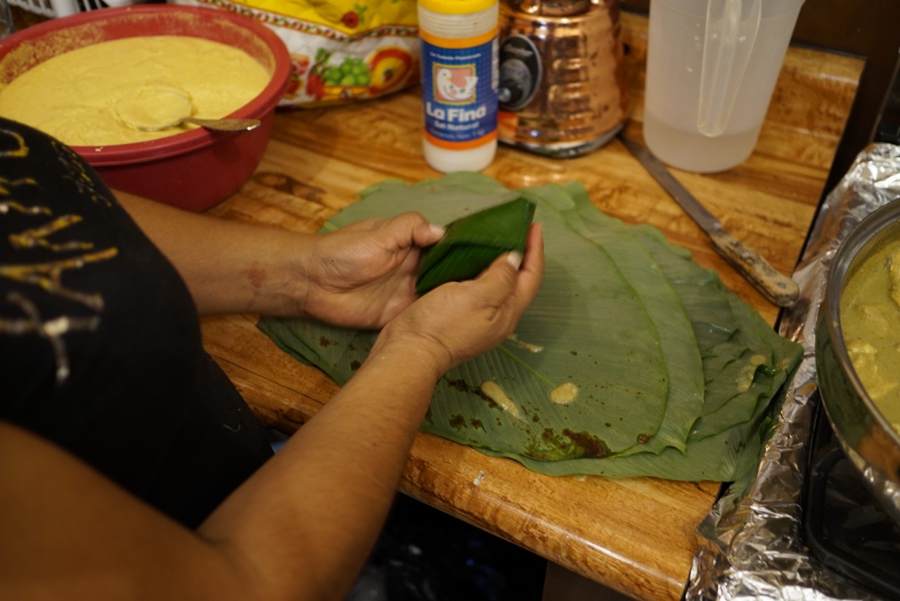 Am nächsten Morgen gab es heiße Schokolade und Tamales zum Frühstück. Tamales ist eine Maismasse, die mit Fleisch und grüner Salsa belegt und in Bananenblätter gewickelt gedünstet wird. Auch auf den zwei Altären im Haus gab es natürlich Frühstück. Bei einem Ritual mit Weihrauch aus einem extra dafür gemachten Kelch wurde das Essen geopfert.