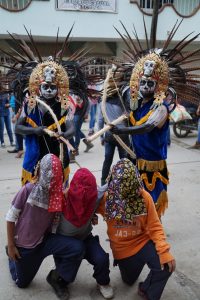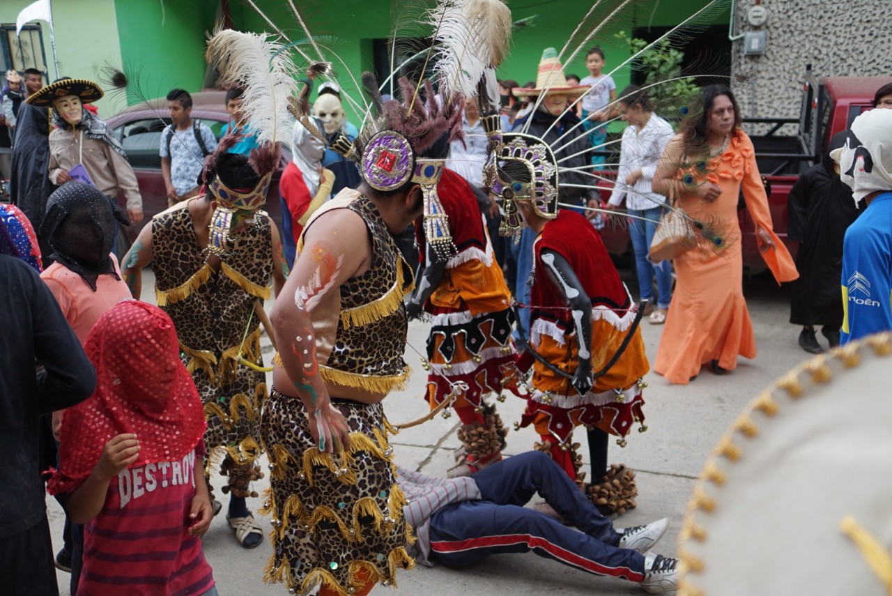 Die Frauen verkleiden sich übrigens nicht. Sie bleiben zuhause und kochen, außerdem pflegen sie den Altar. Allerdings gibt es in Huejutla am 30.11. ein Fest, bei dem es umgekehrt ist.