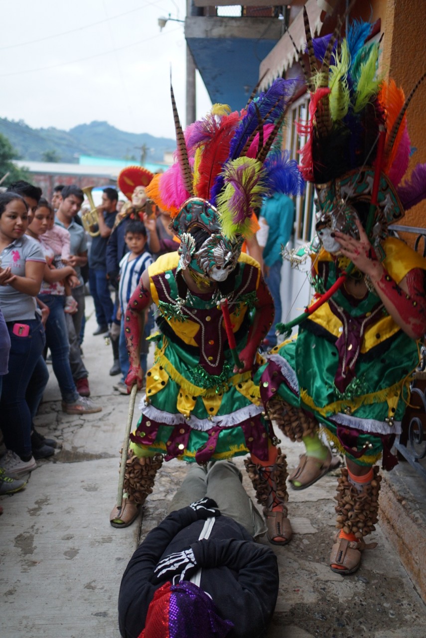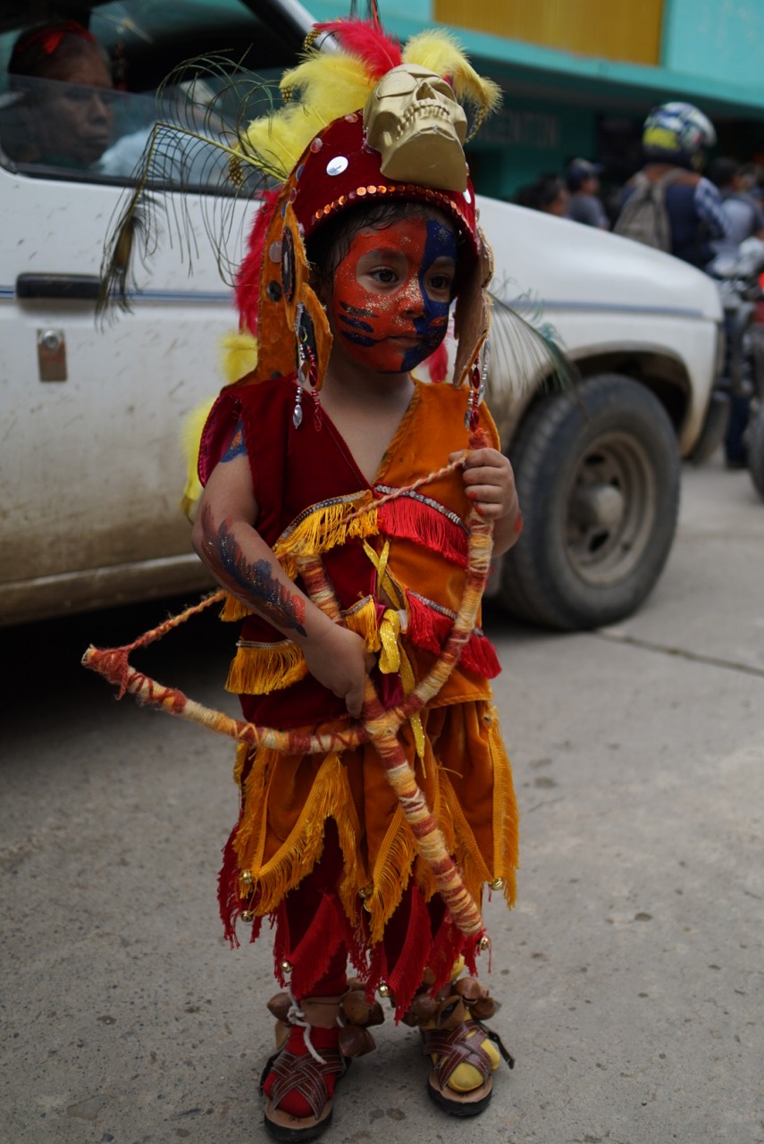 Am Wochenende ging die Fiesta im Dorf weiter: sehr viel fettiges Essen wurde aufgetischt und ab und zu kam eine Parade vorbei. Voran eine Blaskapelle samt Tuba, dahinter Dutzende verkleidete Männer- Mexikaner mit Stiefeln und Sombrero, Maskierte, Pferde, Maiskolben und alles mögliche tanzten vergnügt zwei Tage die Dorfstraßen auf und ab. Am wichtigsten war dabei der Tanz der Comanchen. Zwei als Atzteken vekleidete Männer, die das Leben repräsentieren, kämpfen gegen vermummte Männer, die den Tod repräsentieren, und gewinnen.