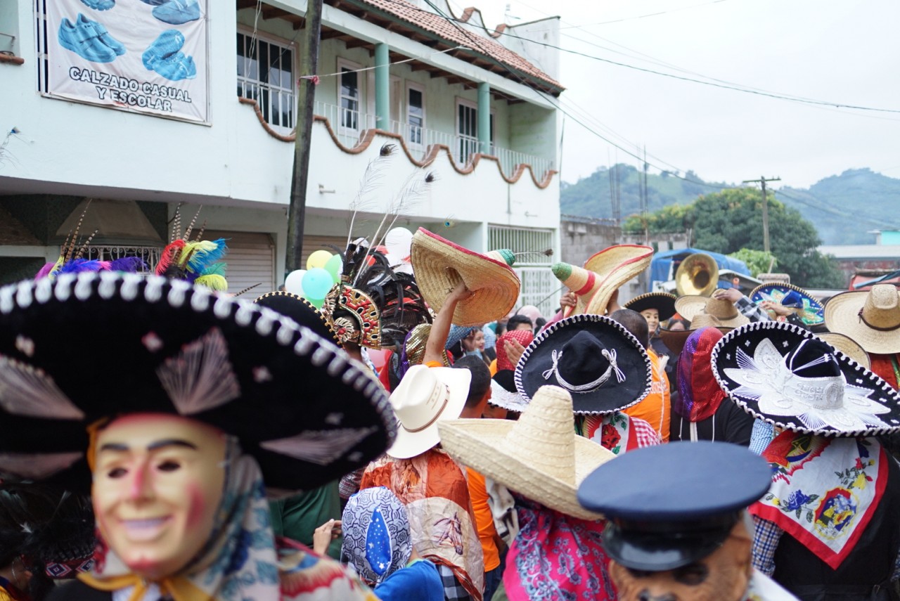 Gleich am ersten Abend ging es los mit einer Art Schönheitswettbewerb vor Tausenden Menschen von Nah und Fern zwischen sechs Mädchen aus dem Dorf. Nachdem sie eine Woche zuvor bereits tanzend gegeneinander angetreten waren, ging es jetzt in die zweite Runde. Zur Einstimmung trat zu Mariachimusik eine Cuadrilla-Tanzgruppe auf: Männer, verkleidet als Alte, Frauen, Betrunkener, Pferd usw. repräsentieren eine Dorfgemeinde.