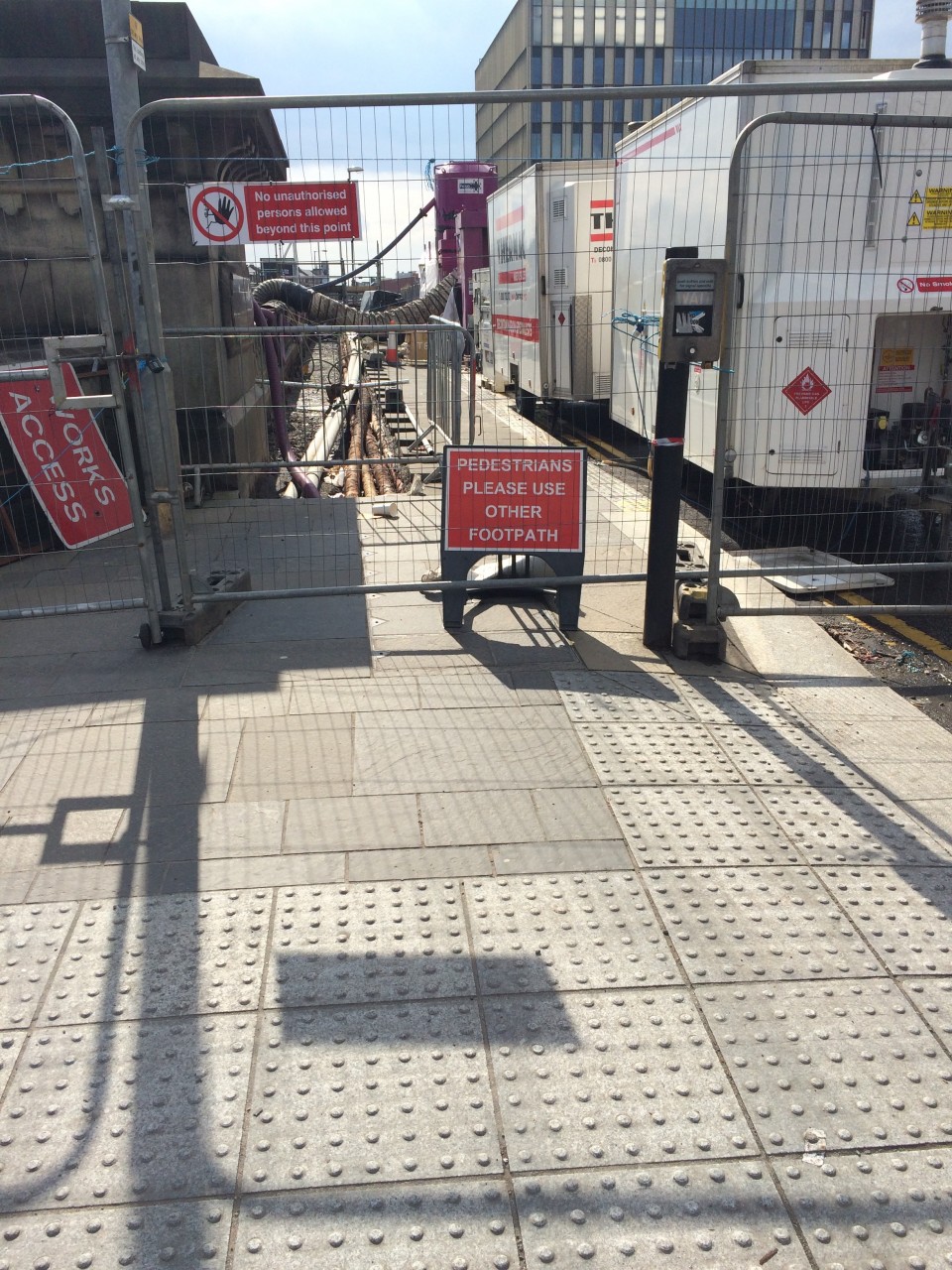 Kurios oder ab und zu auch etwas witzig finde ich, dass es hier Schilder gibt, welche auch das durchaus Offensichtliche noch einmal in Worte fassen. Wie zum Beispiel an dieser Baustelle. Dazu sei noch gesagt, es war wirklich gut abgesperrt und es führte kein Weg dran vorbei.