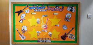 Die Schule ist sehr bunt und sehr schön gestaltet, das gefällt mir echt gut und es regt auf jeden Fall zum Lernen an. In jeder Klasse gibt es mehrere Poster. Es gibt immer eine Mathe-, eine Englisch-und eine Reflektionsecke mit verschiedenen Postern, Regeln, oder auch Aufgaben. Teilweise gibt es auch immer wieder welche zu temporären Themen. Man gibt sich sehr viel Mühe für die Gestaltung der Klassenräume und auch der Flure. In den Fluren sind meist allgemeinere Poster, wie zum Beispiel das zu den Religionen, oder ein Poster zu Times Tables Rockstars (ein Computerspiel, wo die Kinder ihr Einmaleins lernen können und die besten Schüler werden auf diesem Poster geehrt) – dieses Plakat habe ich tatsächlich gestaltet und ich hoffe es wird da noch lange hängen.. Jetzt zu Weihnachten wurden sogar Christmas Lights und ein Weihanchtsbaum aufgestellt!