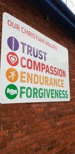 die christlichen Werte beigebracht. Die 4 Werte Compassion, Trust, Endurance und Forgiveness werden sehr groß geschrieben. Es gibt somit an der Schule einige religiöse Aspekte, die meiner Meinung nach allerdings nicht überwiegen. Es gibt einige Poster in der Schule, wöchentliche „Collective Worships“, ein Gebet vor dem Mittagessen, der örtliche Pfarrer ist öfter in der Schule und teilweile hat man ein paar Mitarbeiter von YoYo da, die den Kindern zum Be