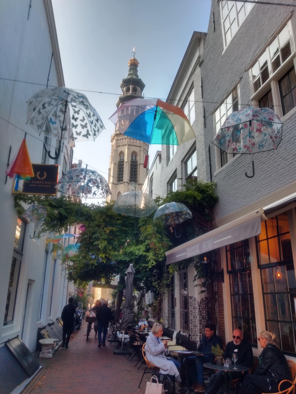 Middelburg, in der Stadt, wo ich mit meiner Gastfamilie lebe, gibt es überall kleine Gassen mit typisch niederländischen Geschäften: Käse, Fisch, Pommes, Eis, Souvenirs und einen supertollen Süßigkeitenladen. Meine persönlichen Highlights sind sowohl das Rathaus mit dem riesigen Marktplatz und die kleine Gasse, in der überall Regenschirme aufgehängt sind. Bis zu meinem Arbeitsplatz nach Goes sind es über die Autobahn knapp 20 Minuten. Mit dem Auto kein Problem. Wie es allerdings mit öffentlichen Verkehrsmitteln aussieht, weiß ich leider nicht. Falls ihr da jedoch Fragen habt, mache ich mich gerne schlau für euch!