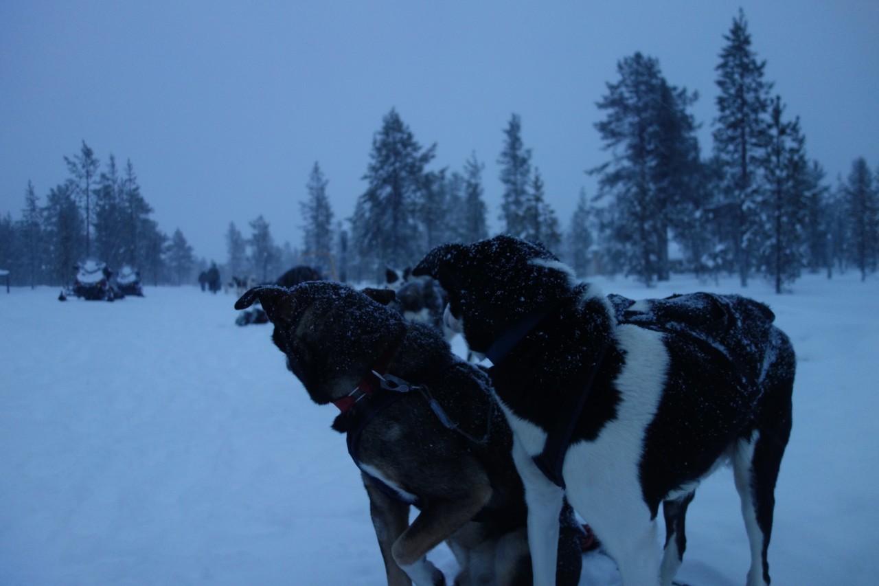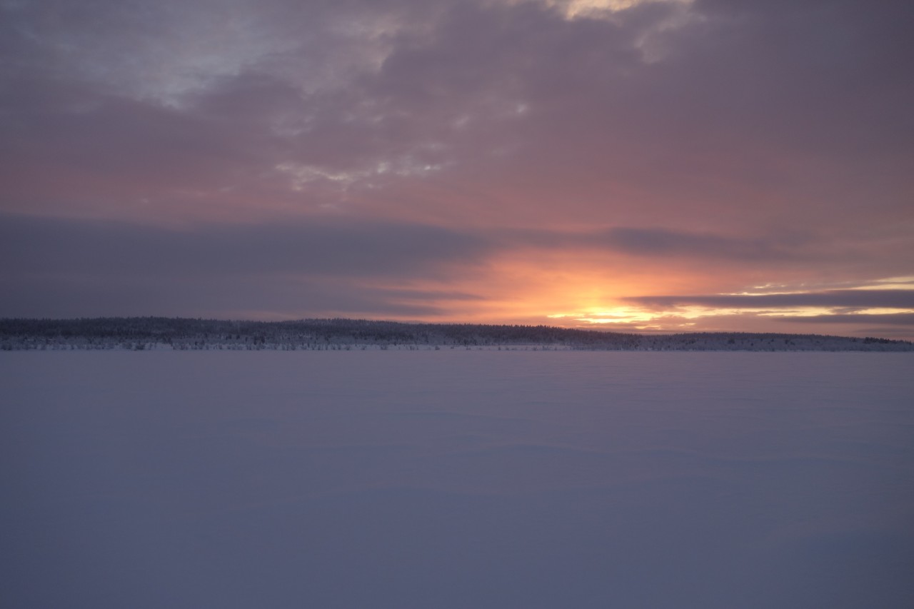Finnland ist eben sehr flach, dicht bewaldet und von Seen durchzogen. Diese sind allesamt zugefroren und dienen als Wege für unsere Schlitten und Schneemobile, teilweise auch als reguläre Straßen als Ersatz für Fährverbindungen. Mit dem Dezember geht auch die stressigste Zeit vorbei, der Weihnachtstourismus neigt sich dem Ende zu. Ab Januar wechselt der Fokus dann auf mehrtägige Touren und geregeltere Abläufe auf der Farm. Dies bedeutet auch, dass sich die Organisationsstruktur dementsprechend anpasst und wieder mehr Zeit für andere Farmarbeiten bleibt. Da fast immer ein oder zwei Touren unterwegs sind, sind weniger Hunde auf der Farm. Das erleichtert die Versorgung erheblich, wobei allerdings auch zusätzliches Personal für die zwei- bis fünftägigen Safaris anfällt.