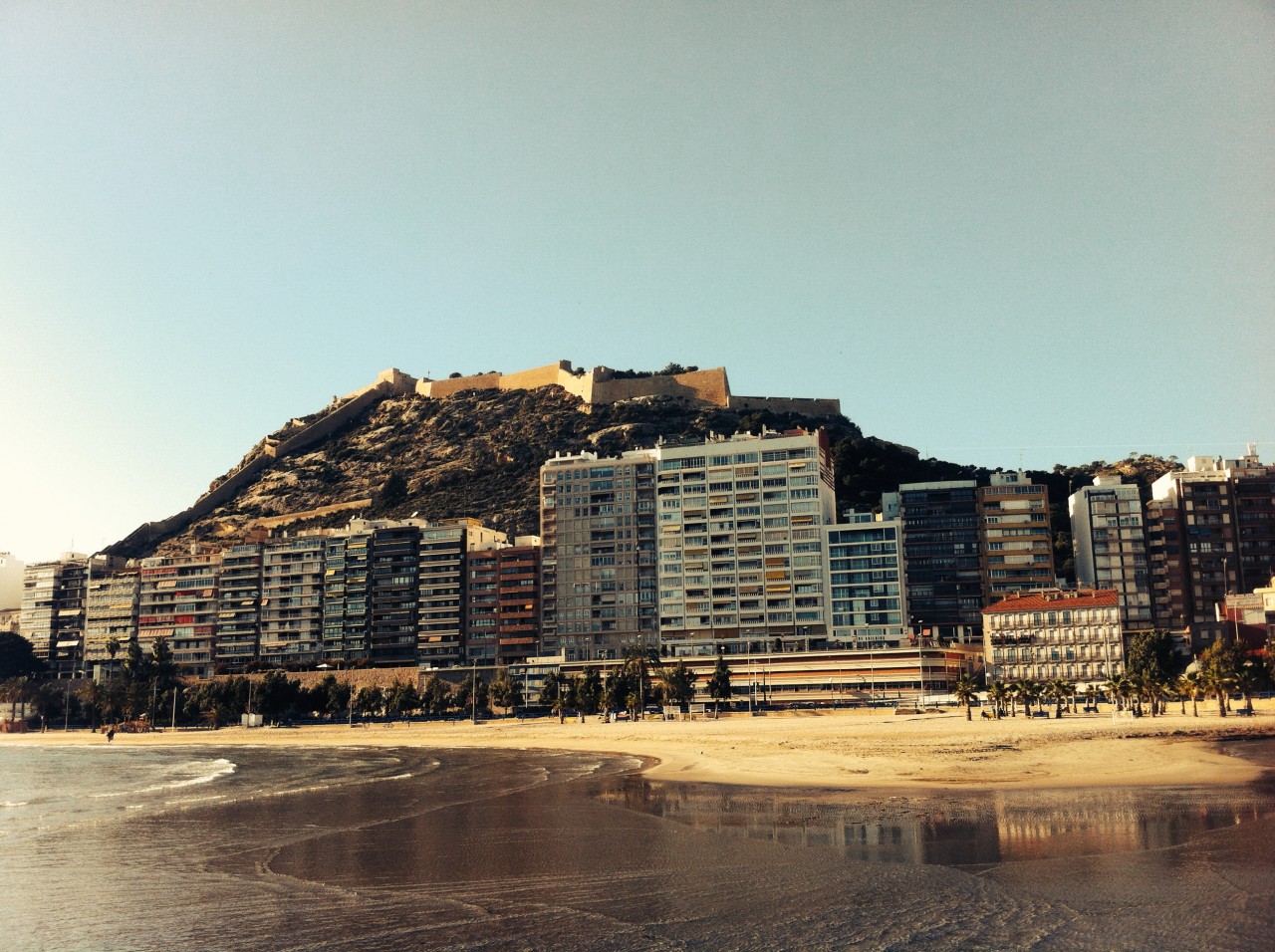 Schon in den ersten Tagen habe ich eine der markantesten Sehenswürdigkeiten von Alicante besichtigt: El castillo Santa Bárbara (Burg). Sie ist Anfang des 9. Jahrhunderts erbaut worden und gilt zu den flächenmäßig größten Burgen Europas. Außerdem liegt sie auf einem 166 Meter hohen Berg. Die Fotos zeigen zum einen die Burg über der Stadt (siehe unten) und zum anderen die überwältigende Aussicht über Alicante (Titelbild), die sich einem von der Burg aus bietet. Zu Fuß dauert der Aufstieg 30 Minuten. Hinunter kann man auch konstenlos mit dem Aufzug fahren, wobei man direkt am Strand (Playa del Postiguet) ankommt. Der Aufzug kann natürlich auch benutzt werden, um auf die Burg zu gelangen, was jedoch 2,70 Euro kostet und eigentlich nicht nötig ist. Auch bei Einbruch der Dunkelheit lohnt es sich die Burg zu besichtigen, da sie von einer Vielzahl von Strahlern beleuchtet wird und einen ganz anderen Charme besitzt als tagsüber. Meiner Meinung nach ist diese Burg ein Muss für jeden, der Alicante besucht.