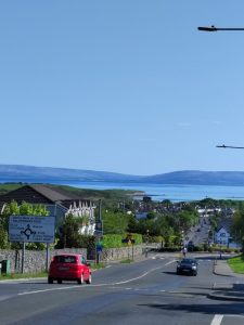Da ging es dann jeden Morgen den Hügel runter mit wunderbarem Blick auf Rusheen Bay. Runter zum Blake Roundabout, rechts rein. Bei der Aussicht konnte man glatt vergessen, dass