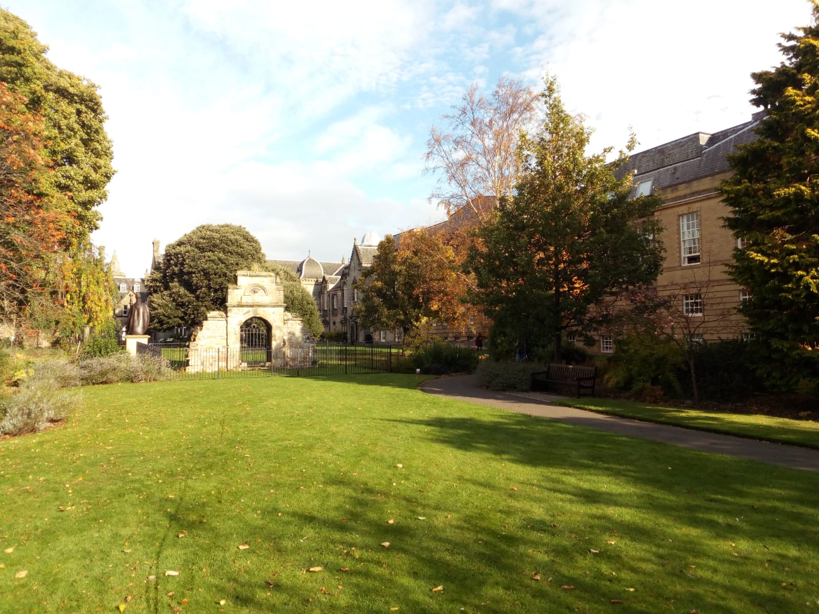 St Andrews ist ein kleines Küstenstädtchen ca. zwei Stunden nördlich der schottischen Hauptstadt Edinburgh. Die Region ist wunderschön, sehr ländlich und es gibt viele kleine Dörfer rund um die Stadt herum. Die Zimmer in St Andrews selber sind sehr teuer, wenn man für nur wenige Monate eine Unterkunft sucht (um die 700 € pro Monat). Aus diesem Grund habe ich ein Zimmer (in einer WG mit einer pensionierten Frau) etwas außerhalb auf dem Land gemietet (zur Wohnungssuche kann ich sparerooms.co.uk empfehlen, auch wenn man eine Gebühr zahlen muss, um Vermieter zu kontaktieren). Da dorthin keine Busse fahren, muss ich mit dem Fahrrad zur Uni radeln. Das ist auf dem Hinweg sehr angenehm, da es nur bergab geht, aber dementsprechend qualvoll ist auch der Rückweg. Ich war zunächst etwas besorgt mit dem Fahrrad zur Uni fahren zu müssen, weil Schottland immer als sehr regnerisch und windig dargestellt wird – und das ist es auch. In St Andrews war das Wetter allerdings bis jetzt meistens trocken und sonnig. Ein paar Leute, die hier aufgewachsen sind, behaupten, dass St Andrews ein Mikroklima besitzt und sich vom typischen schottischen Wetter unterscheidet. Da ein großer Teil meiner Arbeit theoretisch ist, kann ich vieles von meiner Unterkunft aus erledigen, sodass ich nicht jeden Tag in die Stadt radeln muss. Das Leben auf dem Land hier ist sehr angenehm, ruhig und dennoch vielseitig, weil meine Mitbewohnerin sich mit vielen Projekten beschäftigt, bei denen ich ab und zu aushelfe. So habe ich zum Beispiel Einblicke ins Imkern oder in die Herstellung von Cider bekommen.