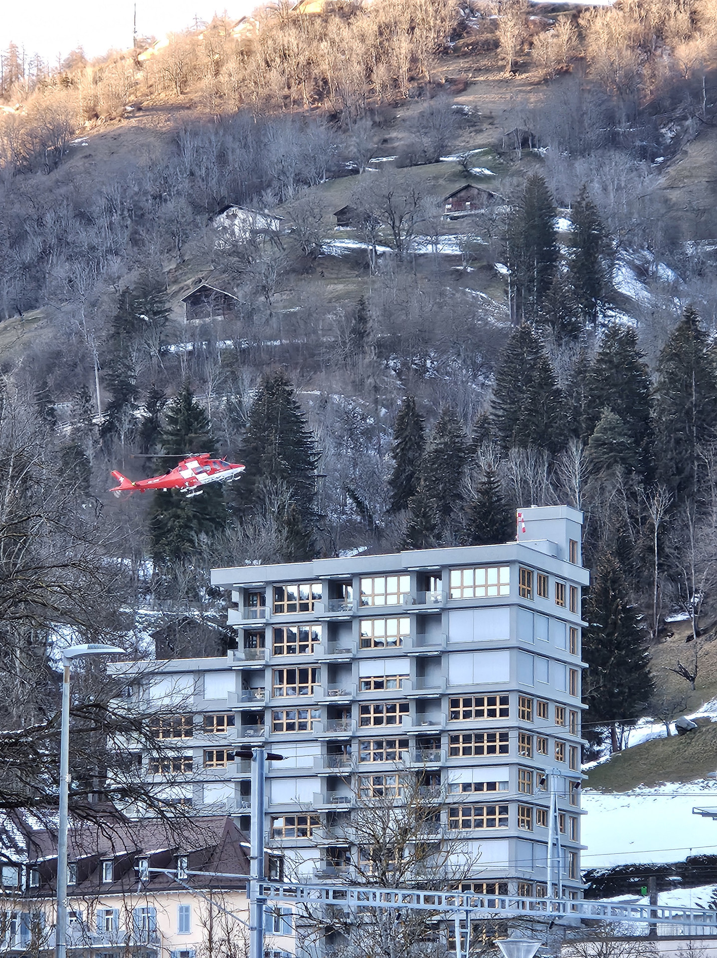 Überhaupt spielt das Thema Ski und Berge auch im Arbeitsalltag eine Rolle: In der Notaufnahme sitzen nicht selten Patient*innen mit Skiverletzungen, von einfachen Prellungen bis hin zu schweren Frakturen. Nicht selten landet der Helikopter der Pistenrettung mehrmals am Tag auf dem Dach der Klinik und bringt akute Notfälle von den nahen Skigebieten. Für mich war es spannend zu sehen, wie eng die Anästhesie hier mit der Unfallchirurgie zusammenarbeitet.
