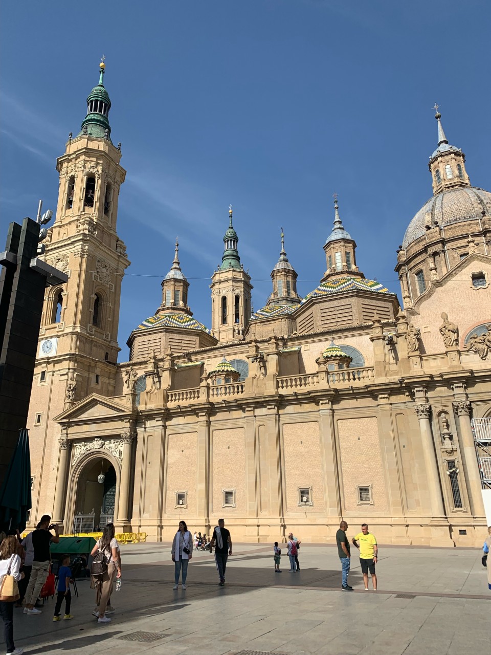 Basilica del Pilar ist das größte barocke Bauwerk Spaniens und gehört der römisch-katholischen Kirche an. Sie liegt am nördlichen Ende der Altstadt am Rande des Flusses Ebro und wurde zu Ehren der Jungfrau Maria erbaut, die Jakobus auf einem Pfeiler in Zaragoza erschienen sein soll. Auch das größte Fest der Stadt, die „Fiestas del Pilar“, werden jedes Jahr um den 12. Oktober herum, zur Ehrung der heiligen Jungfrau Maria, gefeiert. Glücklicherweise werde ich auch für diese Zeit hier in Zaragoza sein. Ich freue mich schon sehr darauf und werde euch natürlich davon berichten. Die Schule hat nämlich bereits zwei Tage vor dem eigentlichen Nationalfeiertag, dem 12. Oktober Brückentage, sodass alle genügend Zeit haben die Festtage zu zelebrieren.