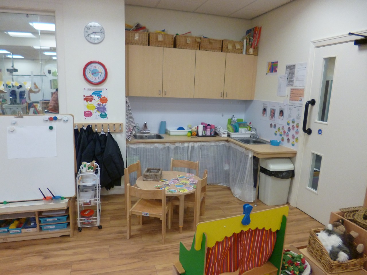In meinem ersten Drittel der Praktikumszeit bin ich in der Reception eingesetzt und werde diese Jahrgangsstufe nun erklären. Ungefähr 40 Kinder werden hier auf zwei Räume verteilt von zwei Lehrerinnen und deren Assisstentinnen unterrichtet. Beide Räume würde ich äußerlich mit einer deutschen Kita vergleichen, allerdings wird hier auch unterrichtet. Zwischen den beiden Gruppenräumen befindet sich ein weiterer, lichtdurchfluteter Raum, in dem gekocht und gebacken werden kann. Der Unterricht kann im Gruppenraum – meist sitzen die Kinder dann auf dem flauschigen Teppich – oder draußen auf dem Spielplatz erfolgen. Lernziel ist es die Kinder zu “active learners and creative thinkers” zu erziehen. In dieser Jahrgangsstufe wird besonders viel Wert auf soziale, sprachliche und physische Fähigkeiten gelegt. Auch mein erster Eindruck nach dieser Woche ist, dass das Miteinander in der Gruppe besonders wichtig ist: Alle helfen aufräumen, alle sollen sich wohlfühlen, alle sitzen gerade und wissen sich in der Gruppe zu benehmen. Disziplin scheint in dieser Schule ebenfalls wichtig zu sein. Wann immer die Kinder den Klassenraum verlassen, stellen sie sich hintereinander in eine Reihe und werden hinausbegleitet.