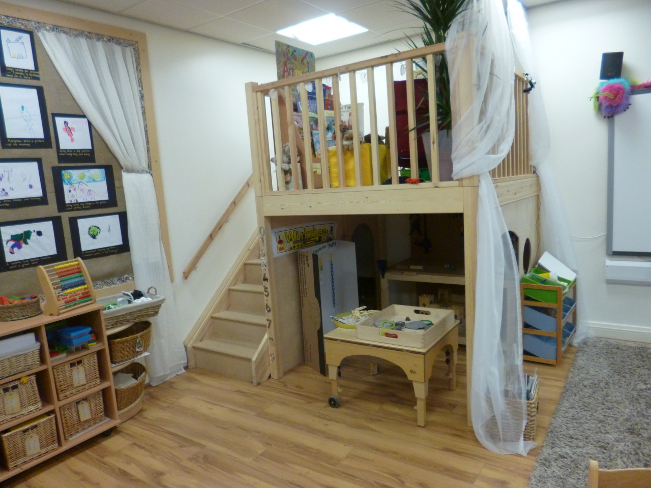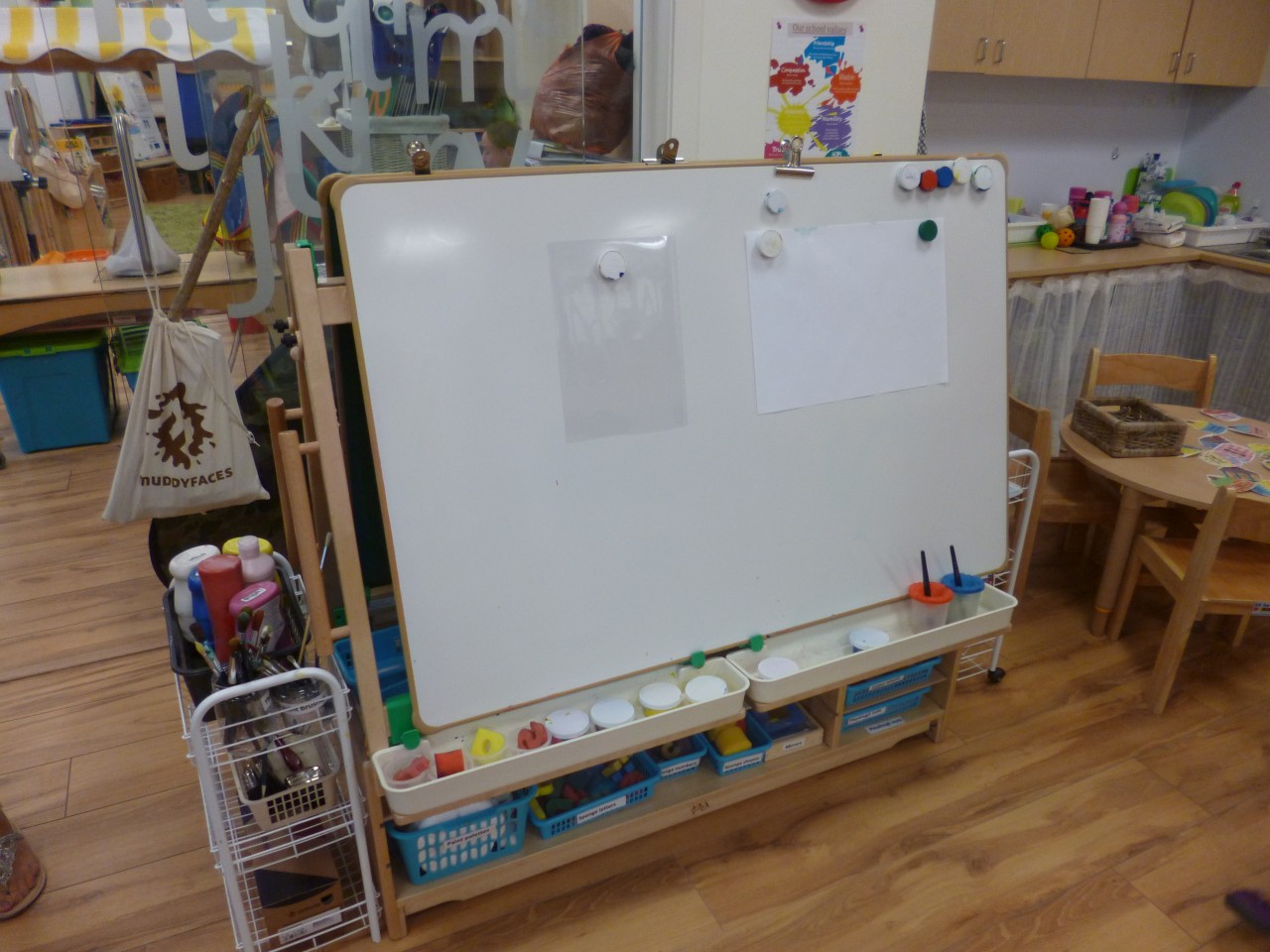 Getreu nach dem Motto learning through play werden die Kinder aber auch spielend an Laute, Buchstaben und Zahlen herangeführt. In der letzten Woche haben wir beispielsweise unter anderem die Laute und Buchstaben p und t gelernt und haben dann Piratenhüte gebastelt und sind auf eine treasure hunt gegangen. Im Klassenzimmer stehen den Kindern sämtliche Möglichkeiten zur Übung der Buchstaben und Zahlen zur Verfügung: Es kann am Schreibtisch, am Smartboard oder an einer Staffelei mit verschiedenen Stiften und Farben das Schreiben der Buchstaben geübt werden.
