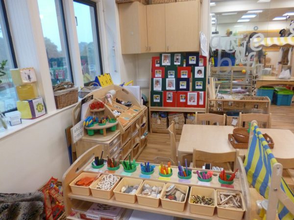 Dokumentiert wird der Lernfortschritt nahezu jeden Tag. In einem kleinen, gelben Heft notieren die Lehrerinnen Beobachtungen. Während des freien Spiels kann man beispielsweise einen guten Einblick in die Fantasiewelt des Kindes bekommen – so wurde mir erklärt. Je besser der Wortschatz des Kindes im freien Spiel ist, desto besser können die Worte später in beispielsweise Aufsätzen eingesetzt werden. Mit iPads werden regelmäßig Fotos von den Kindern gemacht, die in ein Portfolio der Kinder geklebt werden. So werden die Eltern der Kinder wirklich umfangreich informiert.