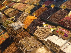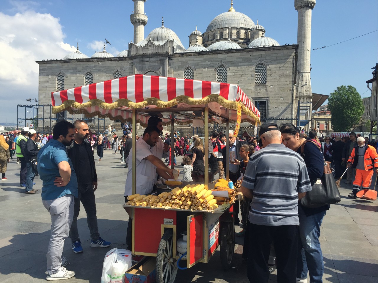Nicht zu kurz kam bisher auch der kulinarische Genuss. Neben unzähligen Straßenständen mit Simit (Sesamkringel), Maronen, Mais und frischem Obst, genieße ich jeden Tag das reichhaltige Angebot in den cay bahcesis (Teegärten), kahvehani (Cafes), meyhanes (Tavernen) und kebapcis (Kebab-Restaurants). Die viele Auswahl und die Essenskultur rund um die Uhr beeindrucken mich jeden Tag auf ein Neues. Dabei dürfen auch Spezialitäten, wie Kokorec (gebratene Schafsinnereien am Spieß) und Süßspeisen wie Künefe (einer Süßspeise aus Käse) oder Tavuk Göğsü (Nachspeise mit Hähnchenfleisch) nicht fehlen.