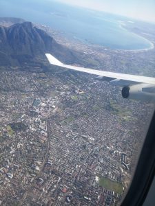 Meine Reise nach Südafrika beginnt am Flughafen Frankfurt am Main. Nachdem ich im Flugzeug ein paar Stunden schlafen konnte, werde ich am Montagmorgen mit einer wunderschönen Aussicht beim Landeanflug auf Kapstadt überrascht.