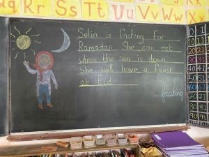 Anfangs wusste ich ehrlich gesagt nicht, ob und wie ich dies den Lehrern und vielleicht sogar den Kindern erklären sollte. Doch zu meiner Überraschung stellte sich heraus, dass der Ramadan jedes Jahr in den verschiedenen Klassen thematisiert wird. Normalerweise lesen die Klassen eine Geschichte über den Ramadan und schauen sich möglicherweise ein Video dazu an.