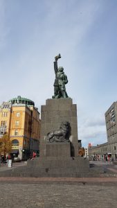 Diese Statue in der Innenstadt von Vaasa erinnert an die Helden des finnischen Unabhängigkeitskrieges gegen Russland (1917-1918).