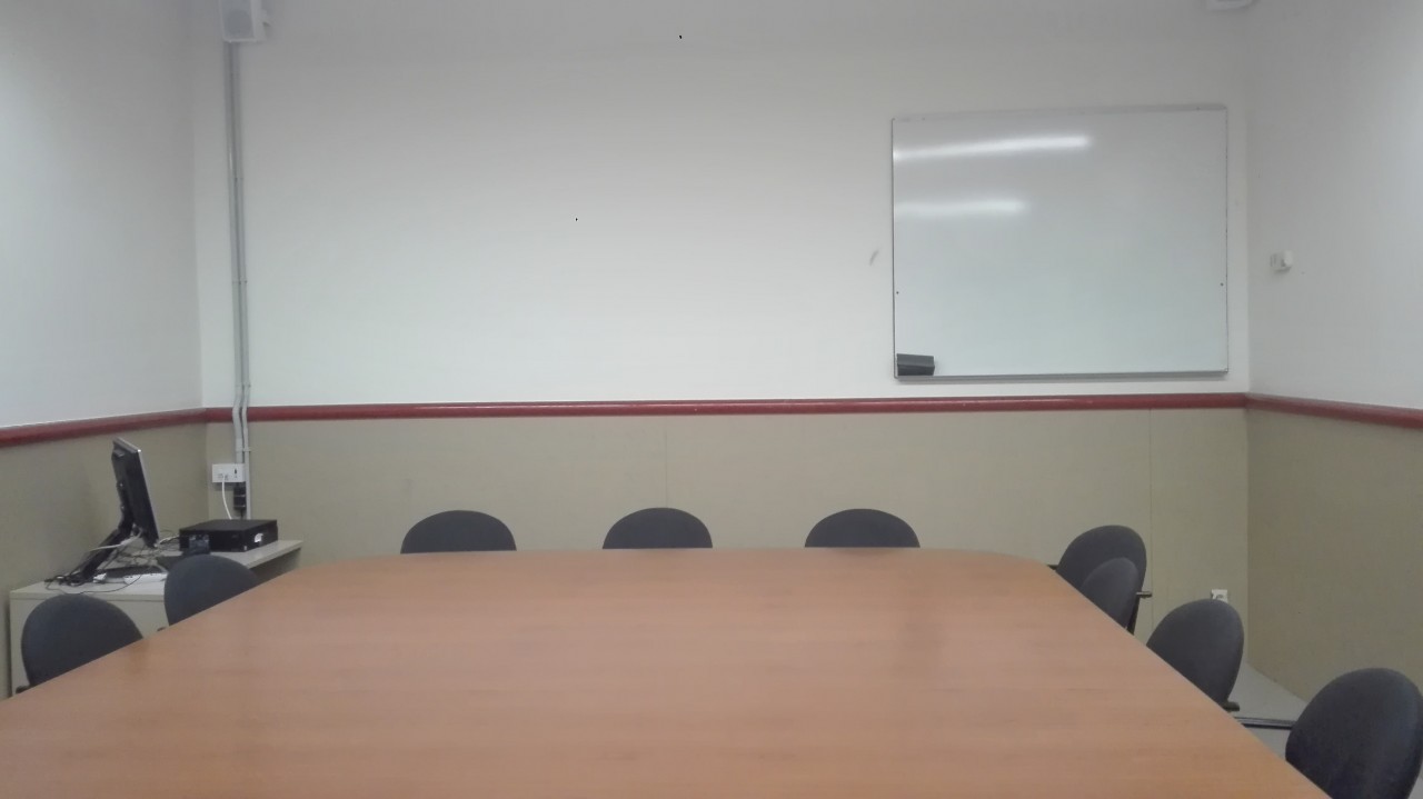 Leider ist mein Unterrichtsraum dagegen eine Vollkatastrophe. Der Raum wird zu 95% von einem riesigen Holztisch eingenommen. Dazu gibt es kein Tageslicht, sondern nur grelles Neonlicht. Die Tafel ist viel zu hoch und man kann sie auch nicht verschieben.