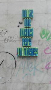 Jetzt gehe ich viel aufmerksamer durch mein Viertel, weiß von einigen Graffitis, durch wen sie entstanden sind und was sie bedeuten und finde immer neue „Doseninstallationen“ von Milata. Das ist ein Pärchen, das überall in Raval Dosen mit Buchstaben bemalt aufhängt, welche gegenseitige Liebesbotschaften darstellen. Besonders romantisch war der Heiratsantrag und die positive Antwort darauf, ebenfalls in Dosenform.