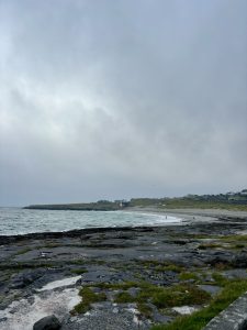 Das Leben hier wirkt, für mich zumindest, etwas entschleunigt im Gegensatz zu meinem Alltag in Deutschland. Ob das ein typisch irischer Alltag ist, wage ich aber zu bezweifeln. Was ich allerdings anmerken kann, ist, dass die Ir*innen es mit der Pünktlichkeit nicht so genau nehmen. Alles bis 10 Minuten später ist on time. Das gilt natürlich, genauso wenig wie für uns Deutsche, nicht für alle Ir*innen. Es gefällt mir hier, auch als eigentlich sehr pünktliche Person, sehr gut. Die Menschen, denen ich hier begegne, sind alle unsagbar freundlich und zuvorkommend. Ich genieße es wirklich sehr von Fremden angelächelt und begrüßt zu werden. Alle sind hier wirklich sehr hilfsbereit und helfen einem schnell weiter, wenn man mal nicht weiterweiß oder sich in einer der tausend kleinen Nebenstraßen verlaufen hat. Was mich allerdings noch mehr gecatched hat als die Menschen hier, ist die wunderschöne Landschaft Westirlands. Wir nutzen unsere Wochenenden hier häufig für ausgiebige Spaziergänge oder Wanderungen. Die Nähe zum Meer erlaubt es uns auch sehr schnell an Orten mit Klippen zu sein. Ich kann gar nicht in Worte fassen, wie wunderschön der Westen Irlands wirklich ist, deshalb habe ich ein paar Fotos angefügt.
