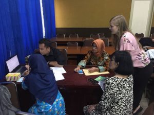 er zweiten Woche vor Ort organisierten und leiteten wir (zwei Praktikantinnen der De Britto, eine Tutorin der UNY und drei Studentinnen im Auslandssemester, alle von der Uni Münster) eine Fortbildung für indonesische Deutschlehrer aus dem Umkreis. Die Fortbildung hatte unterschiedliche Schwerpunkte, die in Workshops zusammen mit den Deutschlehrern erarbeitet wurden: Musik, Spiele, Digitale Medien und Filme im Deutschunterricht. Ich bereitete den Workshop „Filme im Deutschunterricht“ vor und führte ihn auch durch. Von den Deutschlehrern kam hinterher ausschließlich positives Feedback, was uns sehr freute. Da der Unterricht hier meist frontal, lehrkraftgesteuert und lehrbuchfokussiert stattfindet, wollten wir die Lehrer an ein paar neue Unterrichtsformen heranführen und ihnen Möglichkeiten für einen abwechslungsreichen Unterricht zeigen.