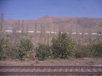Aber eigentlich wollte ich ja von der Zugfahrt berichten: Ich habe ein paar Fotos von unserer Fahrt von Taschkent nach Samarkand gemacht. Ich persönlich finde die Landschaft nicht unbedingt schöner als das Münsterland, aber auf jeden Fall spannender! Auf drei Stunden Strecke bietet sich natürlich auch mehr Platz für Abwechslung.