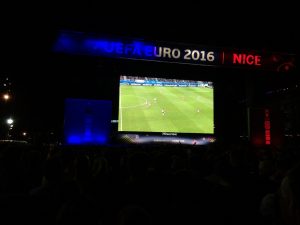 Und so verbringe ich hier meinen Alltag zwischen Arbeit und Urlaubsgefühlen, zwischen Büro, Residenz und Mittelmeer, zwischen Franzosen, Spaniern, Schweizern und Engländern, zwischen Kursanfragen, Preisaufstellungen und Visum-Einladungsbriefen. Und als uns in den letzten Wochen Anfragen von Engländern für Sprachkurse vorlagen, habe ich immer schon gescherzt, sie sollten sich doch auch schonmal um ein Visum kümmern. Dass die Briten tatsächlich für “Leave” gestimmt haben, hat uns dann durchaus überrascht, zwar nicht mit sofortiger Wirkung, aber all die Engländer, die jetzt zum Achtelfinale in Nizza gelandet sind, wissen hoffentlich die letzte Europameisterschaft in Freiheit zu schätzen.