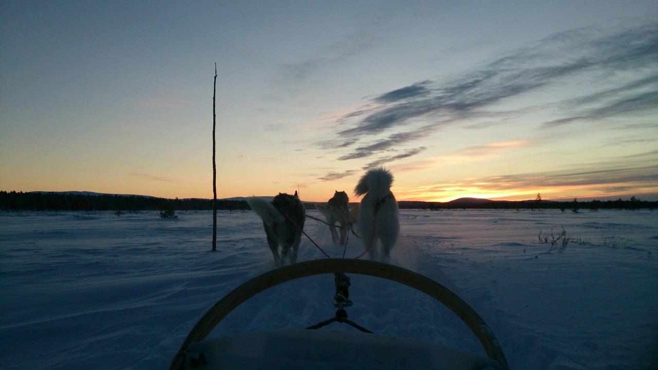 Im Angebot stehen verschiedenste Touren. Von Führungen durch die Farm und 2 km Probefahrt auf einem Schlitten bis zu fünftägigen Safaris ist alles dabei. Die längeren Touren finden allerdings vorrangig im Frühjahr statt. Momentan ist das Programm auf den Weihnachtstourismus ausgerichtet, das heißt Familien kommen für ein paar Tage ins Winter-Wunderland um den Weihnachtsmann zu besuchen, Rentiere zu sehen…und eben um mit einem Hundeschlitten durch das verschneite Finnland zu fahren. Das extremste ist wohl eine Tagestour nach Lappland, die von einer britischen Reisegesellschaft angeboten wird. Die Touristen kommen vormittags in Enontekiö an und bleiben ganze sechs Stunden in Lappland, bevor es mit dem Flieger wieder nach Hause geht. Wir fahren an diesen Tagen mit den großen Schlitten raus und bieten kurze Rundfahrten für die Familien an. Gleichzeitig geht auf der Farm der normale Arbeitsalltag weiter und Standardsafaris verlassen regelmäßig das Gelände. Durch den gut ausgefüllten Arbeitstag und die Dunkelheit erscheinen die Tage eigenartig verzerrt, man verliert leicht das Zeitgefühl. Dezember ist definitiv der stressigste Monat hier, aber sobald man dann auf dem Schlitten steht, die Hunde in die Nacht hinausziehen und der Schnee leise unter den Kufen knirscht, weiß man, es ist all den Aufwand wert!