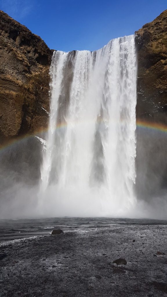 Abgesehen vom Gullfoss gibt es auf dem Weg nach Vík noch zwei weitere bekannte Wasserfälle, die man sich nicht entgehen lassen sollte, den Skógafoss und den Seljalandsfoss. Je nach Jahreszeit und Zeitplan kann man nach der Golden-Circle-Tour noch einen Stopp bei einem dieser beiden Wasserfälle einlegen, bevor man sich auf dem Weg zur Unterkunft macht. Beide liegen in einem Gebiet, in dem man gut und gerne mehrere Stunden wandern kann, wobei ich im Winter empfehlen würde mehr Zeit am Skógafoss einzuplanen und im Sommer mehr am Seljalandsfoss, da ersterer leichter zu begehen ist und die Wege meist frei sind. Bei Letzterem gibt es im Sommer die tolle Möglichkeit hinter dem Wasserfall herzulaufen und – zumindest noch vor knapp drei Jahren – auf die Hochebene zu wandern, von der er herunter fließt. Der Weg hinterm Wasserfall ist im Winter leider gesperrt, weil er durch das Spritzwasser natürlich komplett vereist ist. Auch hier kostet das Parken mittlerweile 750 ISK.