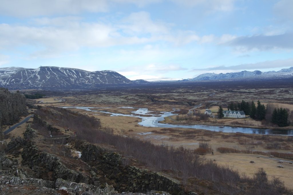Von Reykjavik aus kommt man zuerst an Þingvellir vorbei. Die erste Beschilderung, die auf eine Straße zu der Sehenswürdigkeit leitet, führt einen zu einem Parkplatz direkt am Aussichtspunkt über das Tal. Das ist möglicherweise praktisch für Menschen, die nicht besonders gut zu Fuß sind, dieser Parkplatz kostet allerdings 750 ISK und gerade bei schönem Wetter ist es viel schöner, den gesamten Weg bis zur Plattform zu wandern und so die Landschaft mit ihren Klippen und Gewässern auf sich wirken zu lassen. Ich empfehle daher an dieser Abfahrt vorbeizufahren und einen der Parkplätze weiter unten zu nutzen, die (bisher noch) kostenfrei sind, und an den Wanderwegen durch den Park liegen. Um dorthin zu gelangen, folgt man schlicht der Straße an der ersten Abbiegung nach Þingvellir vorbei und hält die Augen offen bis eine weitere Abbiegung nach Þingvellir erscheint, wo oft auch einige Busse hineinfahren bzw. bereits parken.
