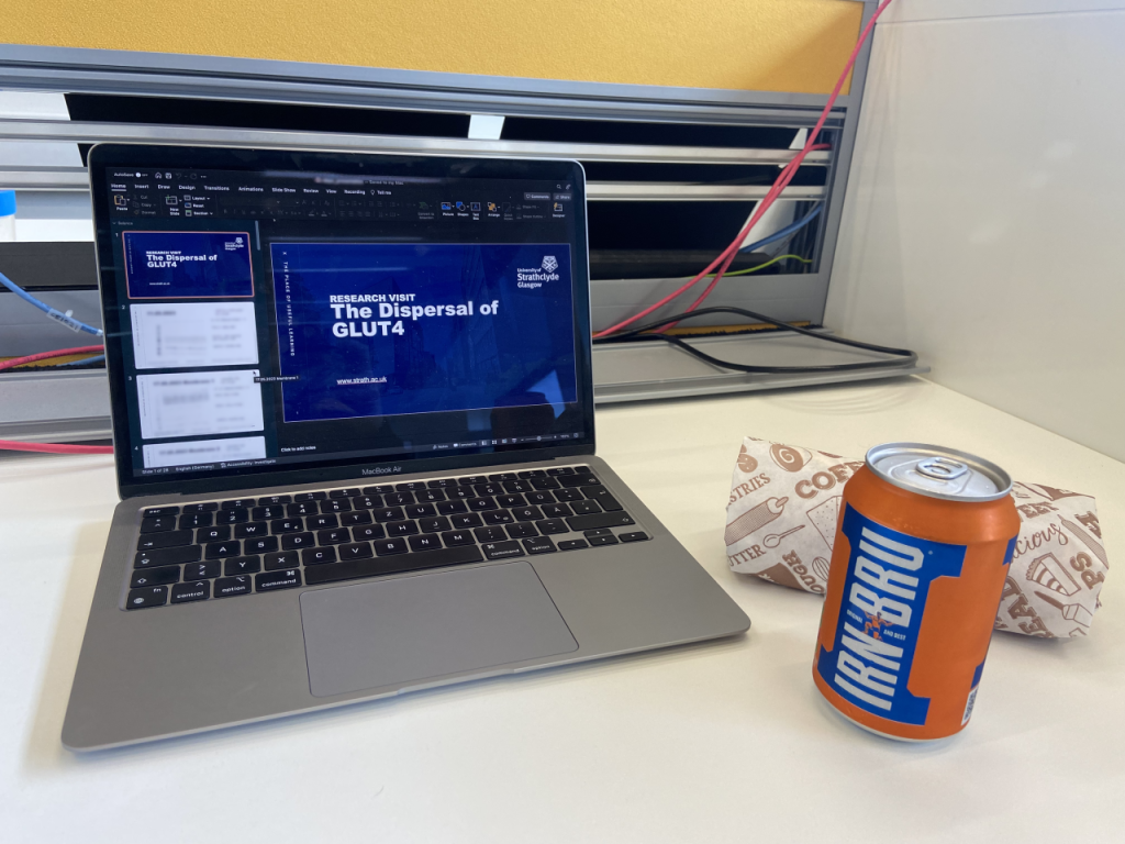 Doch mit meinem Arbeitsplatz an der University of Strathclyde am Institute for Pharmacy & Biomedical Sciences hätte ich wirklich nicht mehr Glück haben können. Ich wurde von meinen Kolleg*innen sehr herzlich empfangen, habe sofort Empfehlungen für Glasgow und Umgebung erhalten, wurde mit typisch schottischen Süßigkeiten wie Shortbread Keksen versorgt und wurde super geduldig in meine Arbeit eingeführt.