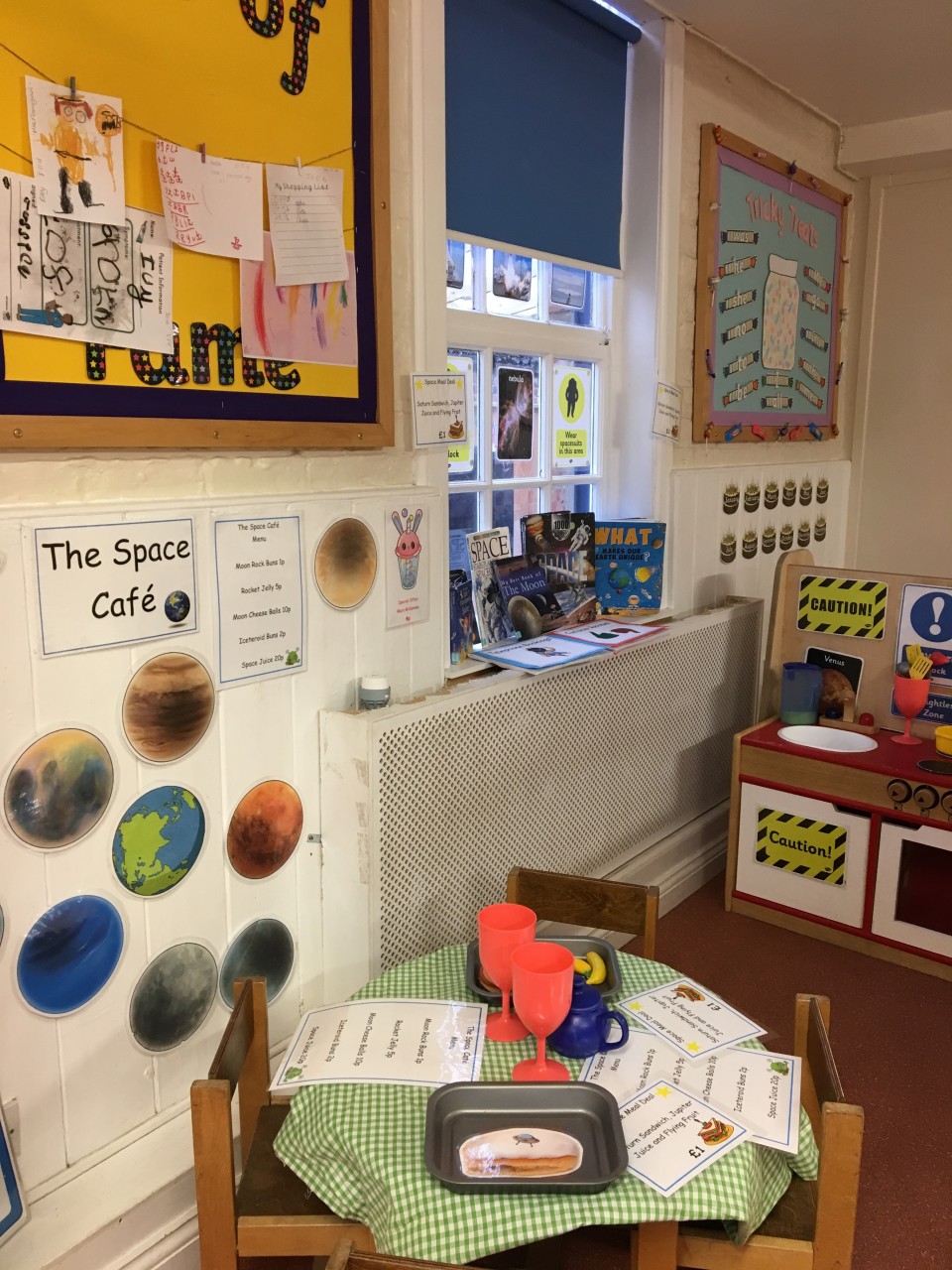 Hierbei klebe ich dann beispielsweise Arbeitsblätter in die jeweiligen Hefte ein oder laminiere Arbeitsmaterialien. Um 8:40 Uhr werden die Schüler dann von ihren Eltern oder Verwandten in den Klassenraum gebracht. Nach einer etwa zehnminütigen Begrüßungs- und Spielphase beginnt der Schulalltag dann mit der Registration. Hierbei wird jeden Morgen und mittags nach der Mittagspause überprüft, wer anwesend oder eben abwesend ist. Dann haben die Rezeption-Schüler Phonics, also Aussprache- und Schreibunterricht, wobei ich die Schüler unterstütze. Anschließend beginnt die sogenannte „Choosing-Time“, wo die Schüler frei entscheiden können, womit sie sich beschäftigen möchten. Im Klassenraum gibt es unterschiedliche Stationen und Bereiche. Dazu gehören unter anderem die Leseecke, der Klassencomputer, die Duplo-Ecke oder im Moment auch das „Space-Café“. Außerdem können die Schüler Schreibchallenges meistern, für die es am Ende der Woche immer eine kleine Belohnung gibt, wenn man alle Challenges abgearbeitet hat. Die sogenannte Rocket Writing Challenge findet auf freiwilliger Basis statt, wird aber trotzdem von vielen Schülern gerne gemeistert. Um 11:50 Uhr geht es dann für die Schüler wie gewohnt zum Mittagessen und für mich in meine Mittagspause.