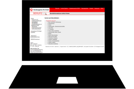 Das BERUFENET ist das Medium der Bundesagentur für Arbeit, um berufskundlichen Informationen zu veröffentlichen und ist nach unseren Recherchen das umfangreichste und aktuellste Medium zu dieser Thematik in Deutschland. Hier werden ca. 3.100 aktuelle Berufe beschrieben, die insgesamt 123 Berufsfeldern in 16 Berufsbereichen zugeordnet sind.