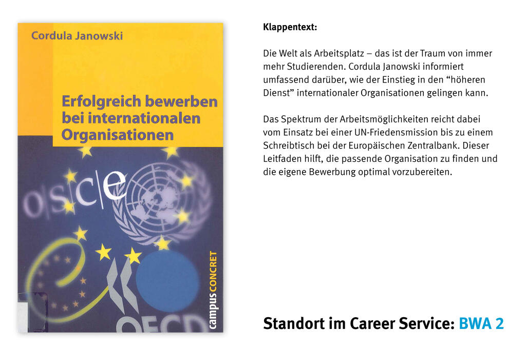 Dies können Sie vor allem in unserem Inforaum tun, in dem Sie Bewerbungsratgeber direkt aus einzelnen Ländern finden. Darüber hinaus gibt es im Inforaum in den Büchern der Rubrik „Arbeiten im Ausland“ häufig auch Hinweise zu den einzelnen Bewerbungsmodalitäten. Außerdem gibt es dort zahlreiche Ländermappen mit Informationen zu einzelnen Ländern und Themen wie Bewerbung, Wirtschaft, Arbeitsmarkt usw.