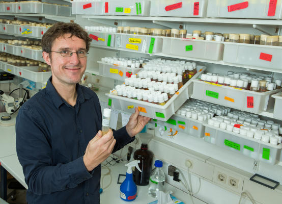 Kennt man die kleine Fliege meist nur als unliebsamen Bewohner des sommerlichen Obstkorbes, so liefert ihr Innerstes Erkenntnisse zur Entstehung und Aufrechterhaltung eines Organismus. Wichtige und weithin gültige Prinzipien der Entwicklungsbiologie wurden durch Forschung an Drosophila gefunden. „Drosophila melanogaster eignet sich für die Forschung hervorragend, da ihr Genmaterial komplett bekannt ist“, erläutert Dr. Sebastian Rumpf vom Institut für Neuro- und Verhaltensbiologie der WWU. Die Forschung mit dem kleinen Insekt ist besonders praktisch: Die Fliege ist klein und vermehrt sich schnell, und ihr Lebenszyklus, also die Zeit bis zur nächsten Generation, ist mit zwei Wochen sehr kurz. Außerdem ist Drosophila genügsam: Ein wenig Apfelsaft-Agar und ein paar Körner Trockenhefe reichen als Futter für die mehr als 100 Fliegen im Röhrchen für mehrere Wochen.
