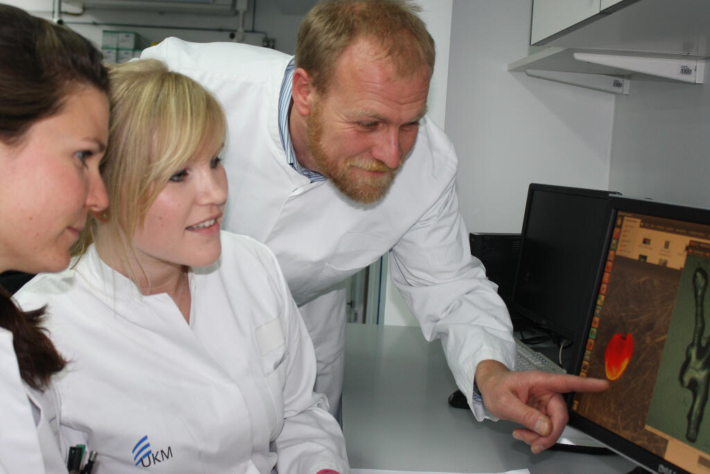 Um solche Entzündungherde in den Gefäßwänden zukünftig sichtbar machen, entwickeln Immunologe Dr. Thomas Vogl, Chemiker Dr. Andreas Faust und Nuklearmediziner Dr. Sven Hermann in einem Projekt des Sonderforschungsbereichs 656 "Molekulare kardiovaskuläre Bildgebung" neue Spürstoffe – sogenannte Tracer – für die Molekulare Bildgebung. Raucher und Menschen mit Bluthochdruck, Diabetes, erhöhten Blutfettwerten oder anderen bekannten Risikofaktoren erleiden häufiger einen Herzinfarkt als andere. Ziel der neuen bildgebenden Verfahren ist es, bei Menschen, die zu dieser Gruppe mit hohem Infarktrisiko gehören, herauszufinden, ob die Erkrankung in ihrem konkreten Fall wirklich vorhanden ist – wie hoch also ihr individuelles Risiko ist. Bei Patienten, bei denen eine Arteriosklerose bereits bekannt ist, könnte mit den neuen Verfahren überprüft werden, ob ein akutes Risiko für einen Infarkt besteht.