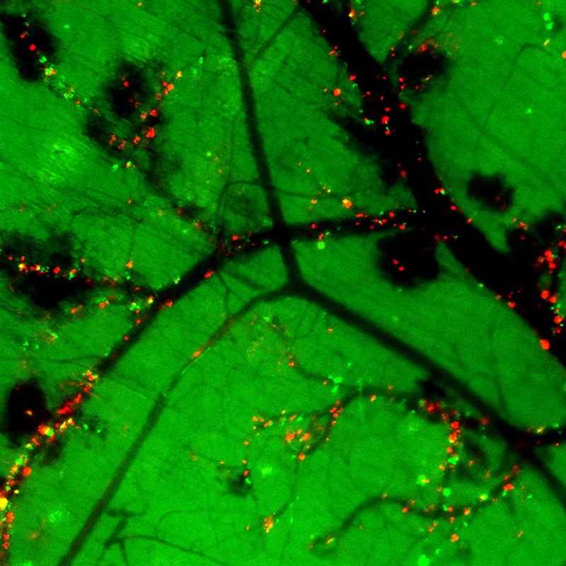 In response to injury, a blood vessel’s cells (endothelial cells) release substances that promote blood clotting and thereby stop bleeding. Those substances are stored in Weibel-Palade bodies (red). Structured illumination microscopy© Inés Pulido, Volker Gerke