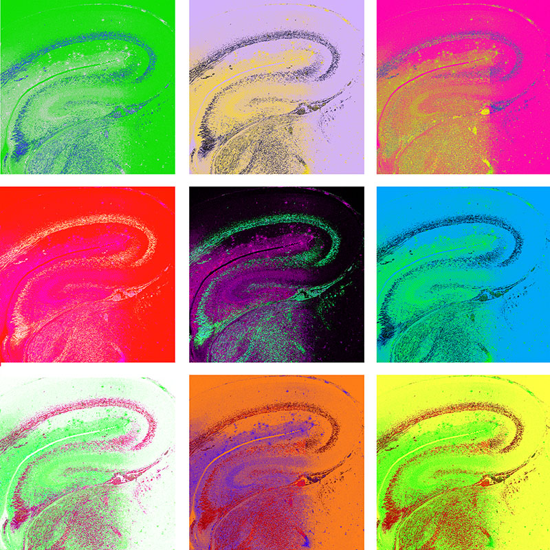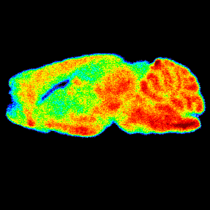 Receptors in the brain, visualised by a radiolabelled chemical substance. Receptors, which consist of proteins that receive and transduce signals, are important for the maintenance of brain function. Autoradiography© Bernhard Wünsch