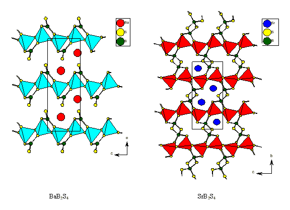 | BaB2S4 | Ketten | tetraedrisch und trigonal-planar | [62] |