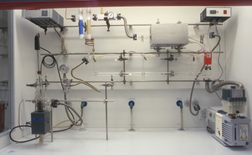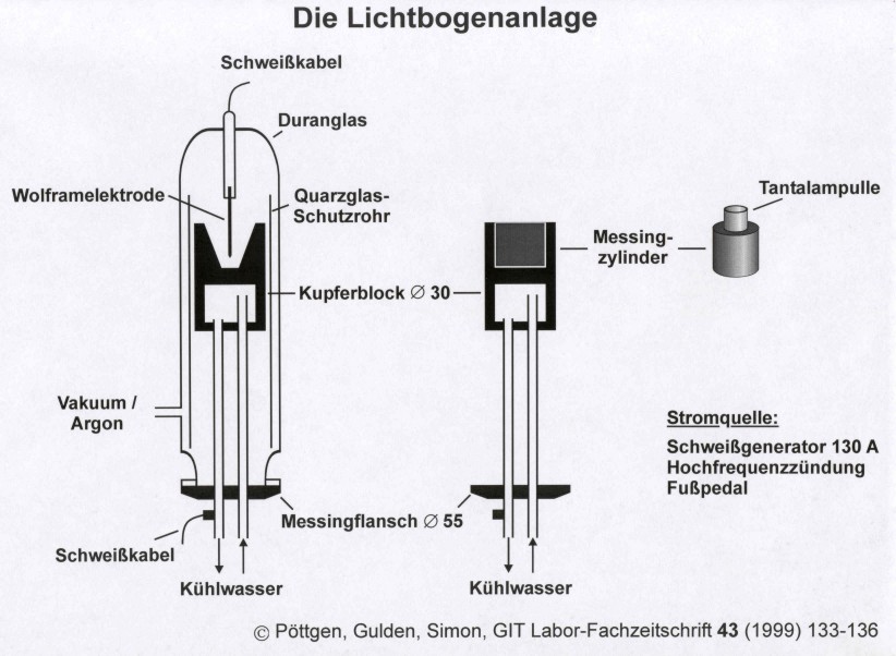 High-melting compounds like transition metal carbides, silicides or germanides can effectively be synthezited by arc-melting in water-cooled copper crucibles. We have recently build up a miniaturized arc-melting apparatus for laboratory use for melting reactants and for sealing metal tubes under cooling conditions.