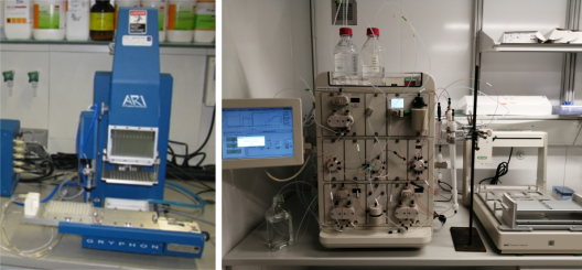 Im Praktikum werden schließlich grundlegende biochemische Methoden aus der aktuellen Forschung in der Arbeitsgruppe erlernt, die unter anderem Proteinreinigung, Kristallisation, Proteinstabilitätsmessungen, Protein-Protein und Protein-Lipid Interaktionsstudien und enzymkinetische Messungen umfassen.