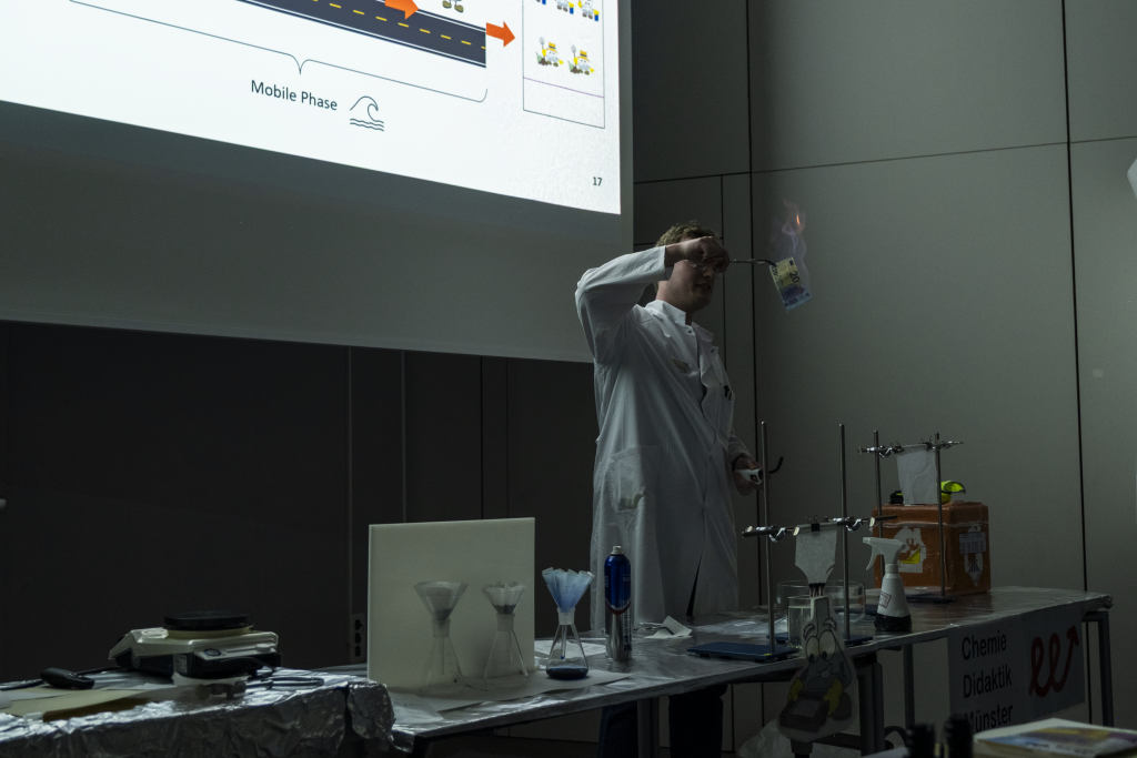 Am 27.03.2026 fand in Marl die Siegerehrung des Landeswettbewerbs "Chem-pions" des Ministeriums für Schule und Bildung NRW statt, gesponsert von Evonik. Unser Institut war dabei und bot eine Vielzahl von Experimenten und Vorführungen rund um das Thema "Papier" an.