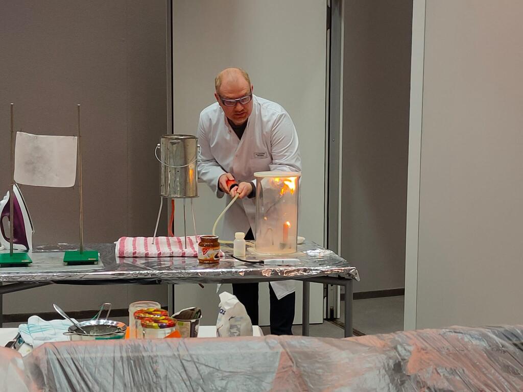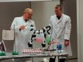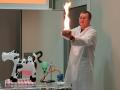 Zum Thema "Milch" zeigt Dr. Stefan Stucky, Dr. Jan-Bernd Haas und Maximilian Fleige interessante Experimente wie die Milchtütenrakete, die Herstellung künstlicher Milch aus Bariumchlorid und Natriumsulfat oder wie man Milch für eine Geheimschrift nutzen kann. Außerdem wurden fluoreszierende Stoffe aus der Milch gezeigt und die Methanmamba aus Kuhausscheidungen durfte auch nicht fehlen.