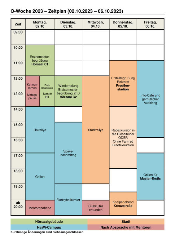 Zeitplan der O-Woche 2021