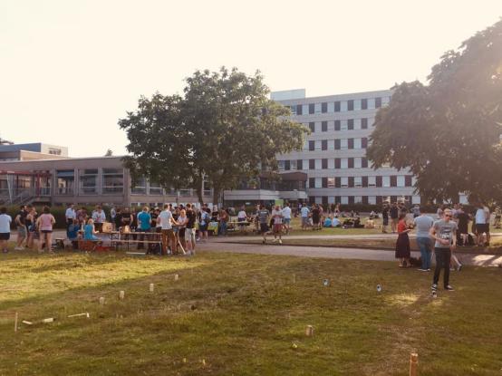 Und genau deswegen organisieren wir zusammen mit dem JCF Münster jeden Sommer ein großes Fest auf dem Campus und je nach Gegebenheiten gibt’s ein WM/EM-Viewing dazu.